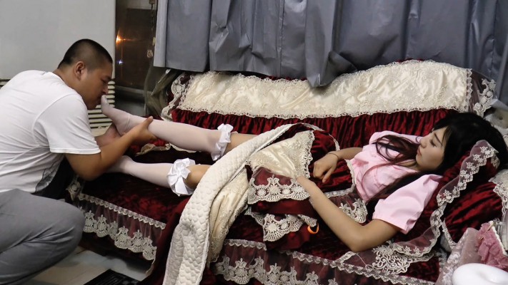 猥琐老黑好不容易处到了女朋友,这天他回到家想跟女友好好亲热,一进门发现女友躺在沙发上盖着被子睡了,老黑一看没戏了正打算自己去和自己的右手解决一下,突然想起来:老子我是变态啊,平常不敢说的何不趁现在,于是毫不犹豫的掀起了盖在女友身上的毯子,看到了他梦寐以求的玉足,玉足上还穿着黑色蕾丝船袜,老黑立马上头了。 爽了一会之后老黑才发现,自己这个娇滴滴的小女友似乎在发烧,赶紧扶上楼。然后老黑急了,女友可别烧坏了,幸好女友闺蜜是个护士,打电话叫来帮看看不行打一针。闺蜜护士来了看了看表示没事,就是着凉了,睡一觉就好了,这老黑才放心。闺蜜决定在这呆一会看看怎么样,就来到楼下沙发休息,一会她也困了,倒在沙发上就睡,还乱踹被子。老黑下楼看见闺蜜在沙发上睡,赶紧帮忙盖被子,盖着盖着他就看到了女友闺蜜的白丝。。。于是老黑不淡定了,这都送到嘴边了就舔吧。。。闺蜜没睡死,老黑看闺蜜总动,就没敢继续而是躲到一边观察,果然没一会闺蜜起来了,然后就自己上楼了,这下俩闺蜜睡到一个床上,还在那踹被子,一个黑船袜一个白丝,在那勾人。 老黑哪受得了这么勾引,啥也不说了,上去舔吧。。边舔还小心的观察姐俩的动静生怕被发现了以后可怎么做人。可是恋足癖的本性让他越来越无所谓,不管了埋头干饭吧,找一个女朋友都费劲这一下送嘴边两个,不吃对不起变态的名号啊