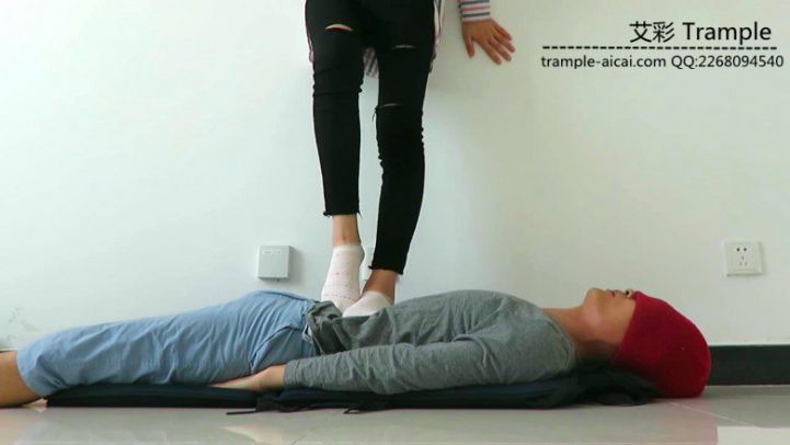 女主穿着船袜在贱狗身上践踏,脱了袜子对着贱狗胸腹猛踩,累了以后把棉袜放在自己美丽的裸足上,让贱狗闻舔!非常诱人!