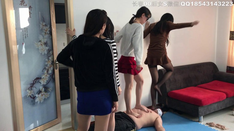 四位美女一起细高跟踩踏,单脚全体重踩头