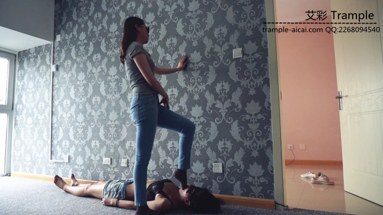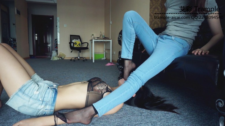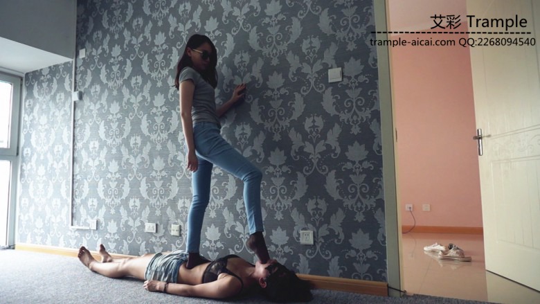 女奴的脚上,非常优美并且残忍。全体重踩到女奴肚子上插嘴,等等。女奴被插的一只干呕,流口水,但还是愿意继续被虐