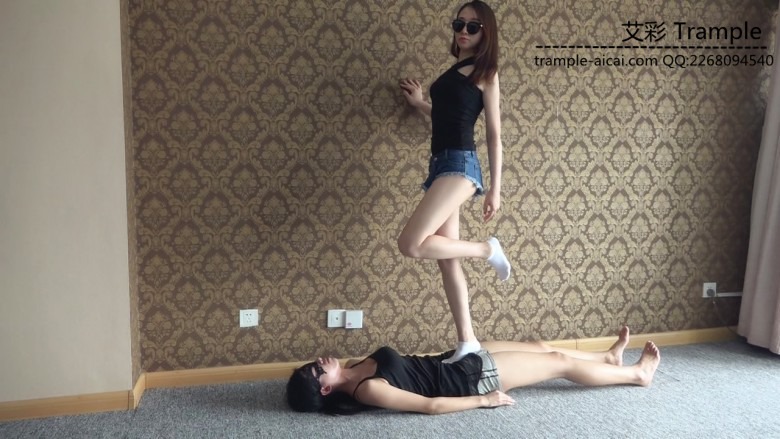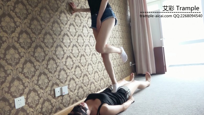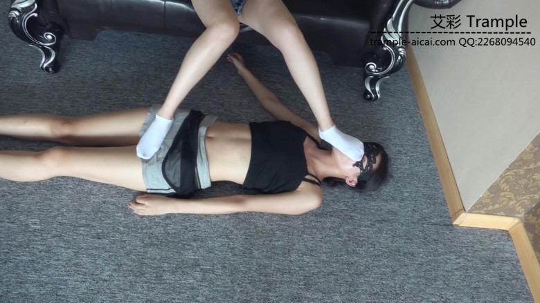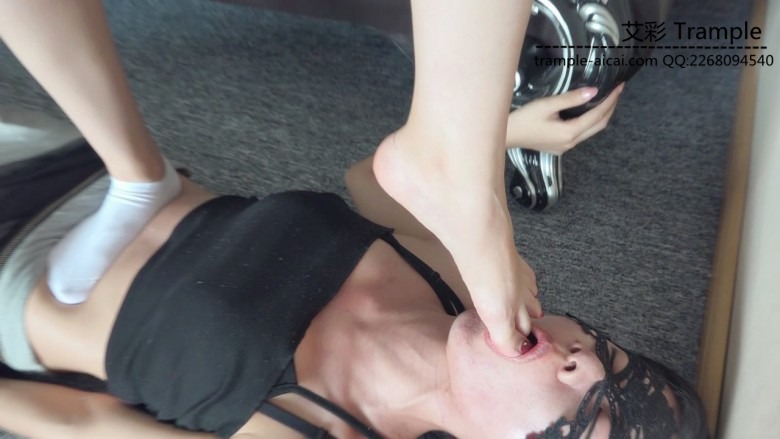 白棉袜踩踏,踩女M大胸,口水,羞辱控制,舔脚插嘴,美脚白袜蹂躏。