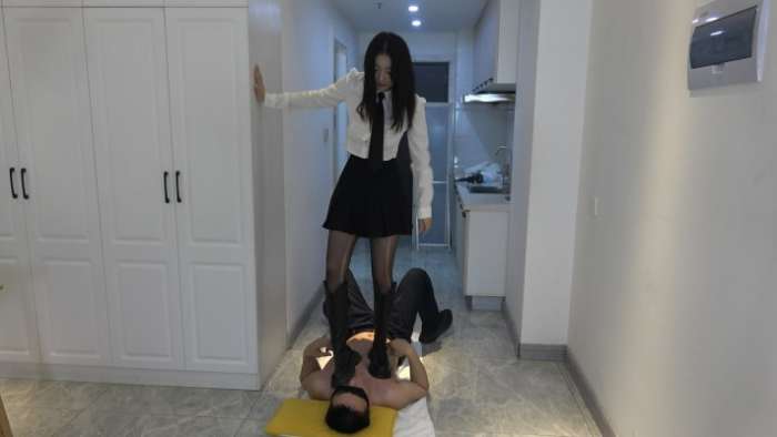 璐璐黑丝皮靴踩踏贱狗,边踩边让贱狗舔靴子,贱狗卖力的舔主人美丽的靴子,踩脸,踩脖子,踩肚子,口水,璐璐边踩边语言羞辱贱狗,贱狗被主人踩在脚下舔靴子十分兴奋,心里一直渴望被主人踩废。