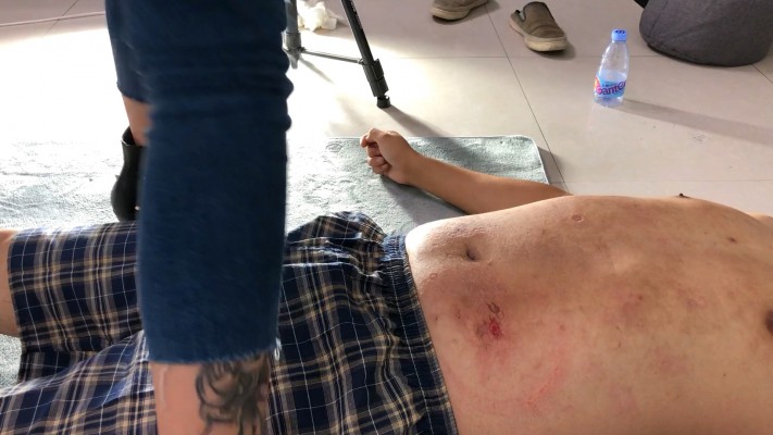 内容: 经大佬同意发出部分视频,没什么大的主题只为了能在M的肚子上,胸口上转出血洞!拍摄不易!永久伤 不要随意尝试!