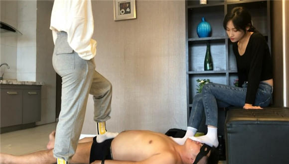 内容:两位美主穿着棉袜皮靴,对M展开长达一小时的脚责调教。先是皮靴踢裆踩踏,口水责罚之后用胶带封住嘴,然后是强制性棉袜除臭呼吸,脱了袜子舔脚,最后两位美主还光着脚踩碎香蕉和酸奶混合后让M用舌头舔舐干净。片长1个小时让广大同好一次看过瘾。