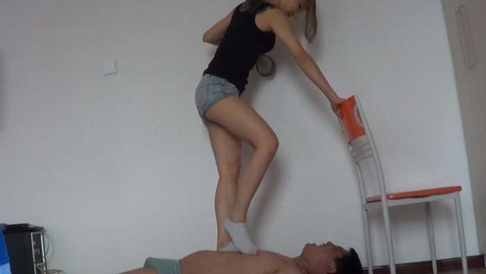 强迫闻臭袜子,踩踏,全体重踩脸,皮带抽,耳光羞辱