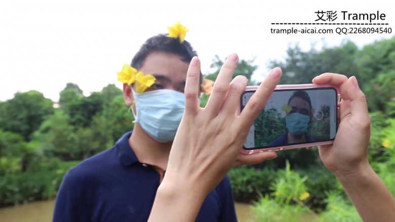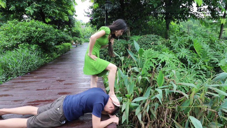 【内容简介】:在公园的园林里,芷晴戏耍起她的小奴。自己骑车让小奴跟在后面追着跑;把鲜花插在他的头上羞辱拍照,又骑着他脖子去摘果子;看到一口水井坏坏地让小奴洗脚,却坐在他身上,把他的头踩进水里、让他舔脚…还有欺负小奴生吃花朵等,随意的调教…