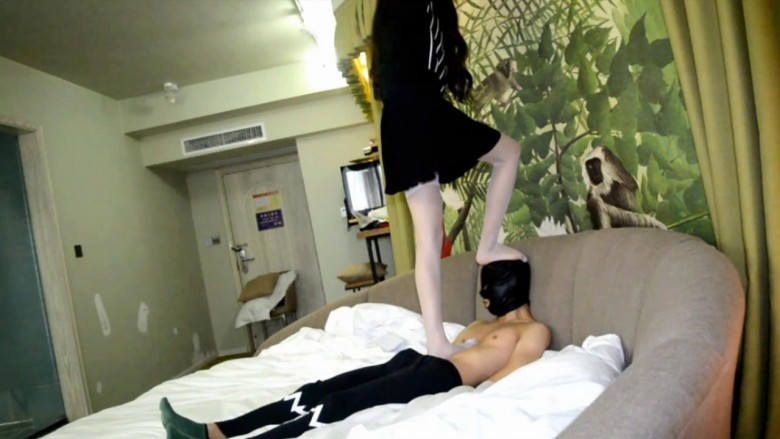 剧情:同事非常迷恋女神的脚,一天趁女神在睡觉,偷偷凑到女神脚边舔起脚来,但是不小心把女神弄醒了,女神非常生气。为了保住自己形象,决定把同事踩死