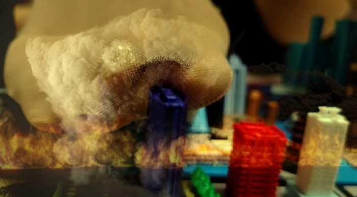 视频是巨人毁灭城市的一个视频,巨人脚踩毁灭城市,坐毁城市,手掌毁灭城市,口香糖毁灭城市,嘴吞城市,头发龙卷风毁灭城市,转盘游戏毁灭城市等多种玩法。视频说话的地方比较少,基本是画面展示震撼效果较多。