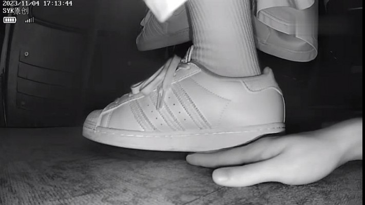 B671 – 无意识长裙阿迪贝壳白鞋翘腿踩全手垫脚 bf42623
