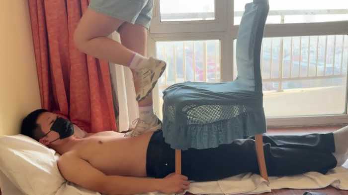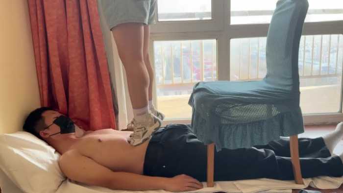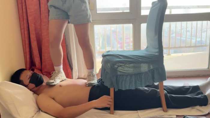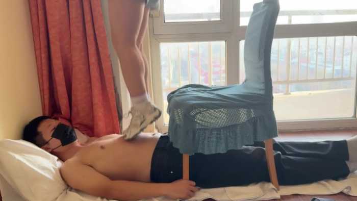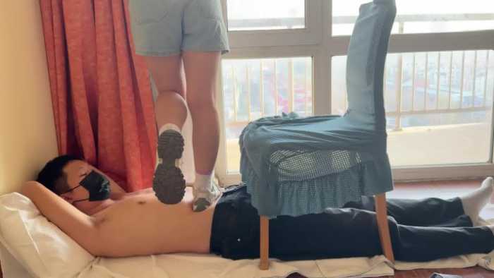 这是小琴老师的最后一部视频了,全程穿着运动鞋踩肚子、踩胸,从肚子走上椅子,再利用椅子做跳板跳踩下来,时不时在肚子上踮起脚尖,让毯子感受鞋底纹路和肚皮之间的摩擦。感觉毯子有些难受后,小琴老师还贴心地用脚帮毯子揉肚子。小琴老师实习期马上要结束了,这部视频便宜出给大家当作福利,希望小琴老师未来工作顺利~