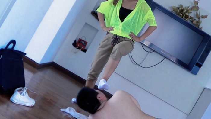 剧情:乞丐敲门讨饭,丹丹开门后乞丐发现只有丹丹自己在家,馋的直流口水,趁丹丹不注意图谋不轨,被丹丹挣脱,乞丐并不死心反复尝试,一开始丹丹还打算挣脱后逃跑,后来鼓起勇气爆揍乞丐,最后乞丐被虐的磕头求饶。